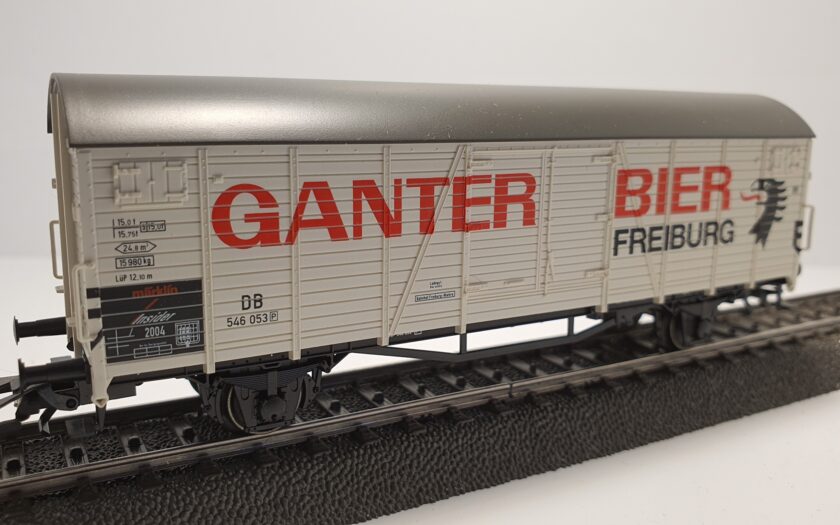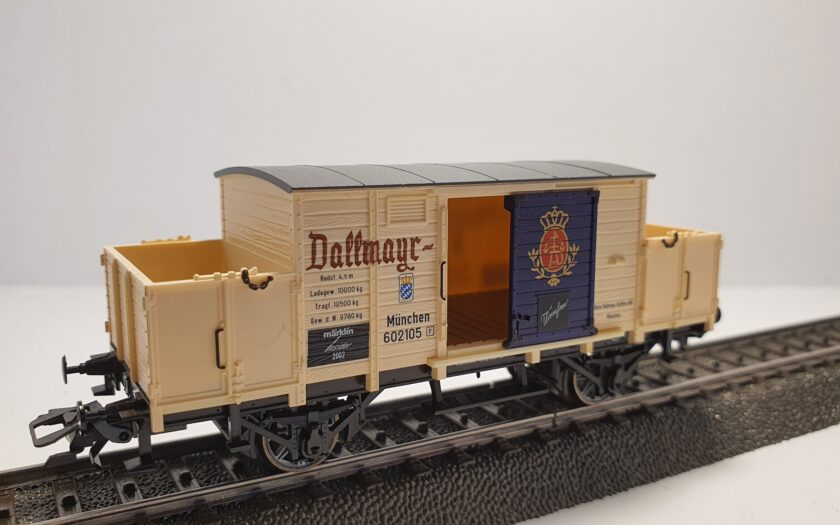 Gedeckter Güterwagen „Robert Metzger“ beladen mit Holzfässern
