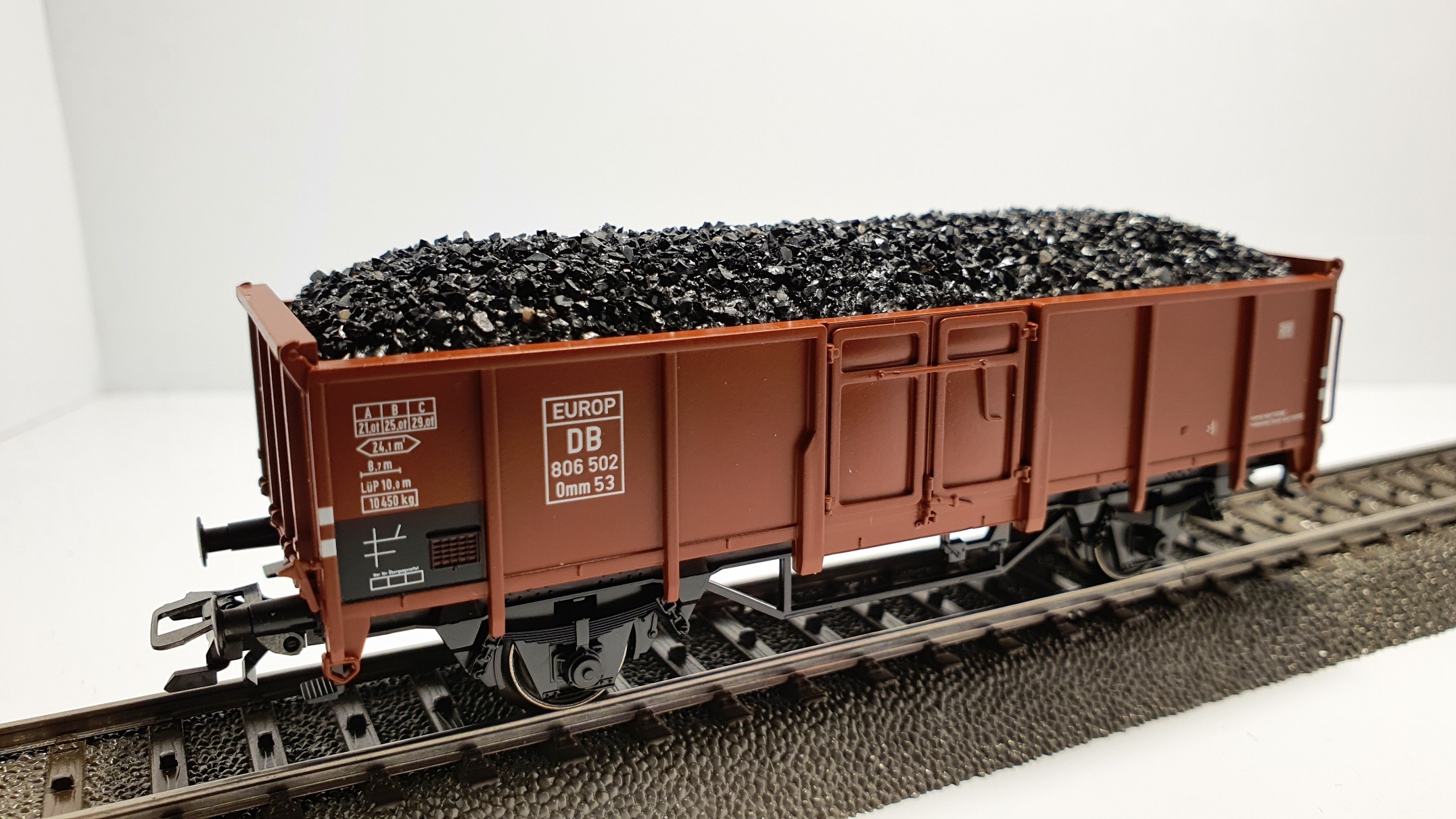 Offener Güterwagen Ommu 40 mit Kohle-Ladeguteinsatz der Deutschen Bundesbahn (DB)