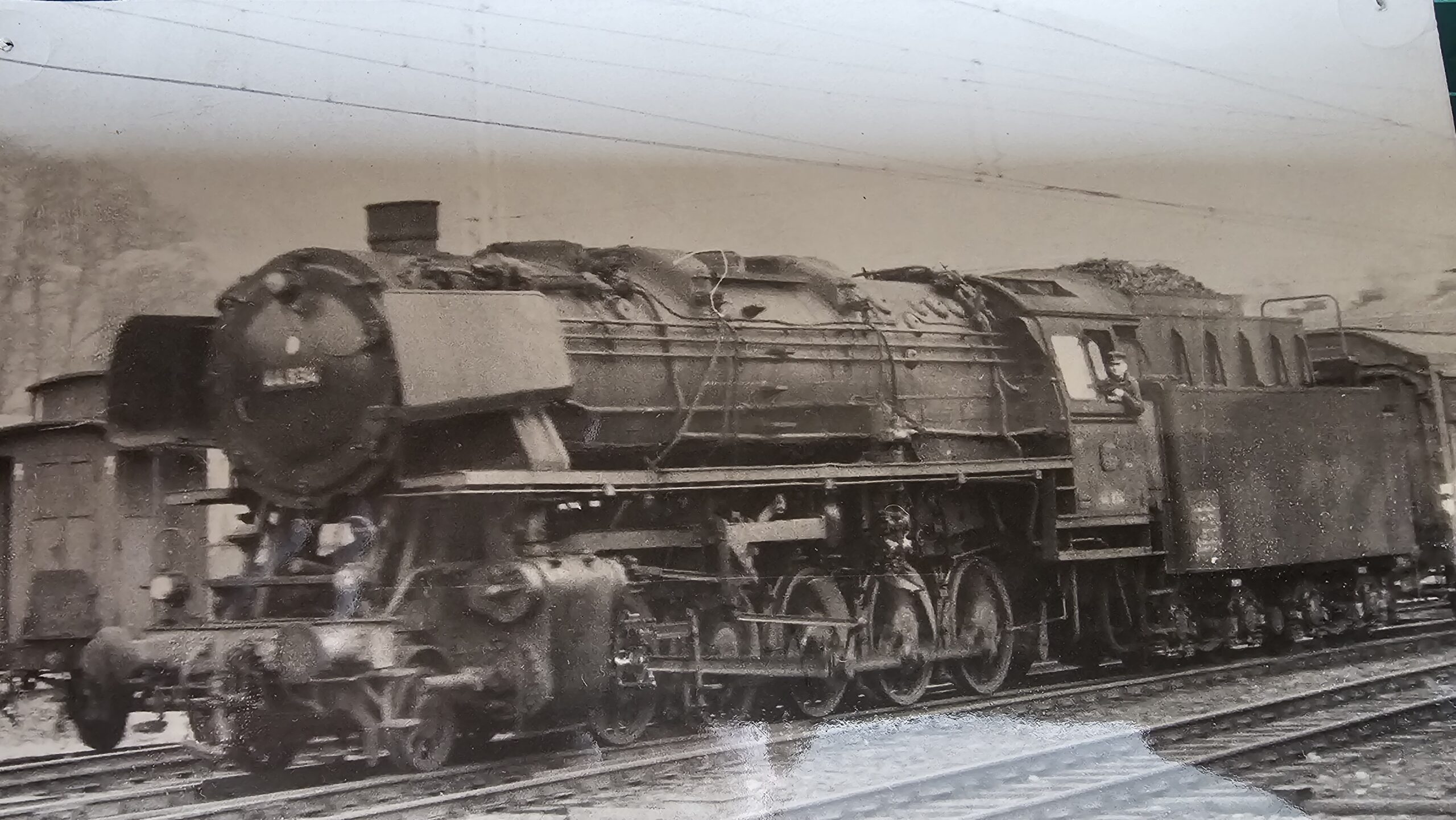 Baureihe 44 mit Kohlefeuerung und Witte-Windleitblechen. Betriebszustand 1967