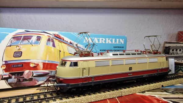 Bauzeit: 1966 – 1968, BR-Nr. E 03 002 auf erhabenen schwarzen Schildern, Frontschürzen