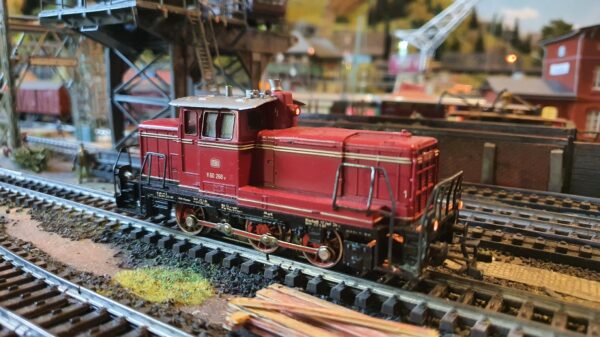 wurde von Märklin unter der Artikelnummer 3064 von 1963 – 1968 hergestellt. Die hier zu sehende Lok ist mit einem Decoder ausgestattet worden und weil die Bezeichnung abgerieben war neu ausgezeichnet mit der Betriebsnummer V60 268.