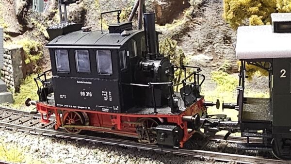 Vorbild: Bayerische Lokalbahnlok PtL 2/2 als Baureihe BR 98.3 „Glaskasten“ der Deutschen Bundesbahn (DB). Im Betriebszustand der Epoche III um 1954.