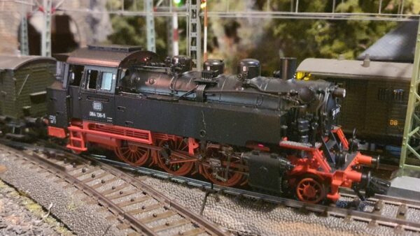 Dampflokomotive Baureihe 064 der Deutschen Bundesbahn (DB). Ausführung mit geschweißten Wasserkästen. Ohne Indusi. Lok-Betriebsnummer 064 136-5. Betriebszustand um 1973.