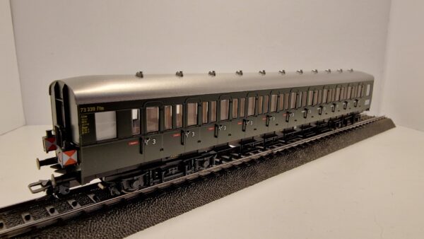 Eingebaute Schlusslichter mit wartungsfreien Leuchtdioden. Vorbereitet zur Strom führenden Wagenverbindung entweder mit steckbaren Kurzkupplungsdeichseln 7319 oder trennbaren Kurzkupplungen 72020. Handgriffe an den Einstiegstüren separat montiert. Stirnseitig angesetzte Leitern.