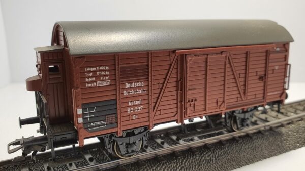 48750 Tonnendachwagen GR 20 Kassel mit Bremserhaus der DRG Vorbild Schiebtüren zum Öffnen Merkmale Epoche II Bahngesellschaft DRG Kupplung KKK Wagennummer 80 007 Andere ansehen: 46528-03 48827 << Zurück zur Liste
