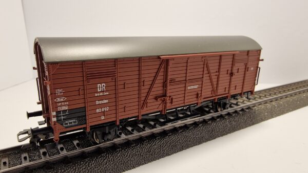 Gedeckter Güterwagen in der Version ohne Handbremse und ohne Stirnwandtüren