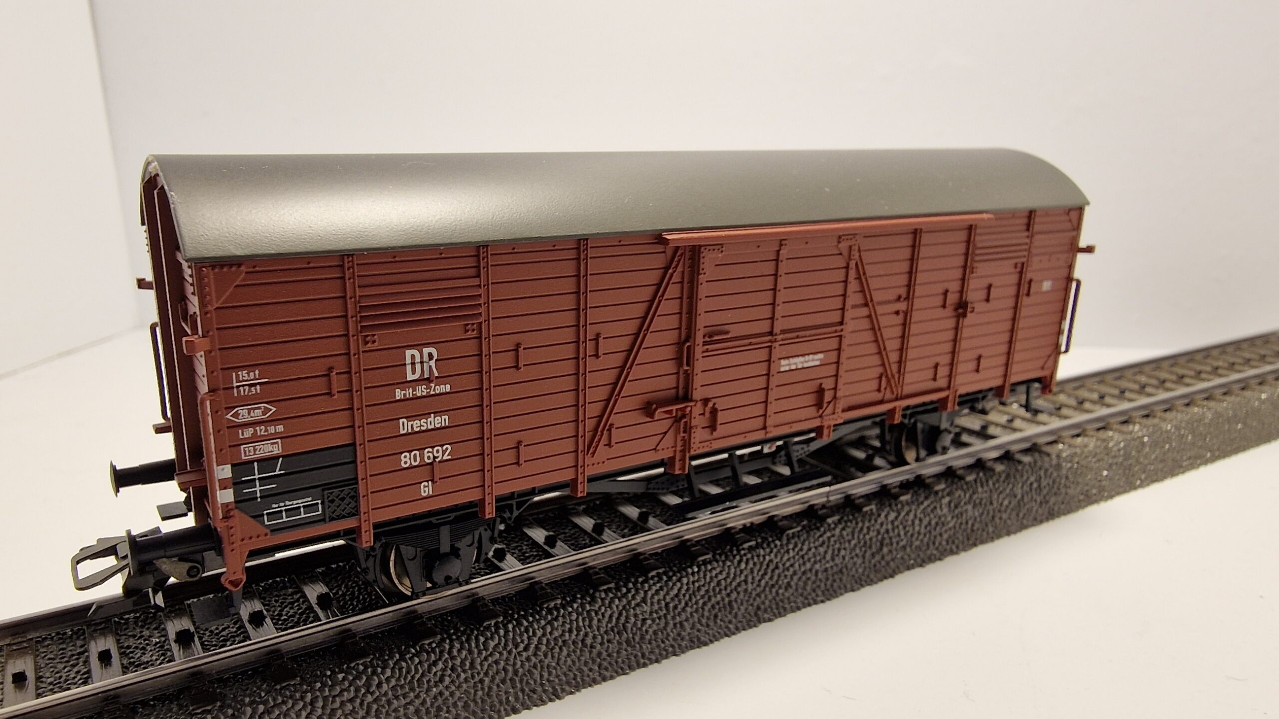 Güterwagen Gl Dresden der Deutschen Bundesbahn (DB), mit Kennzeichnung DR/Brit-US-Zone
